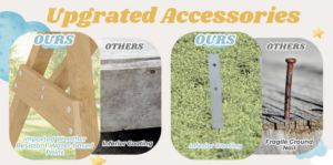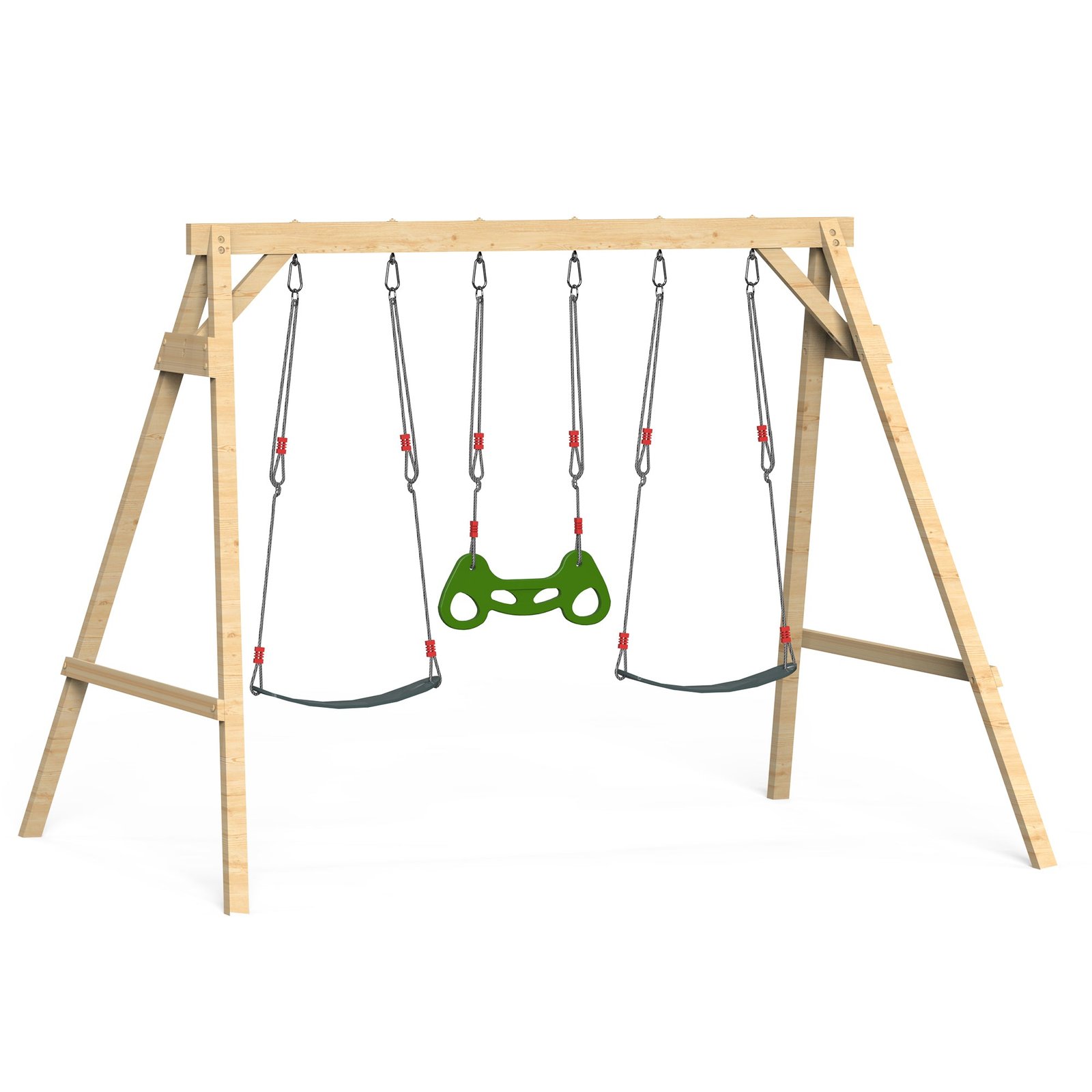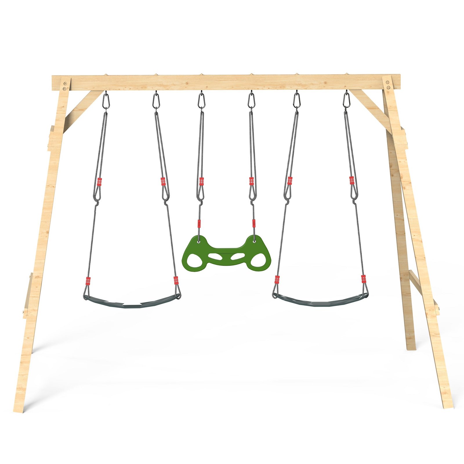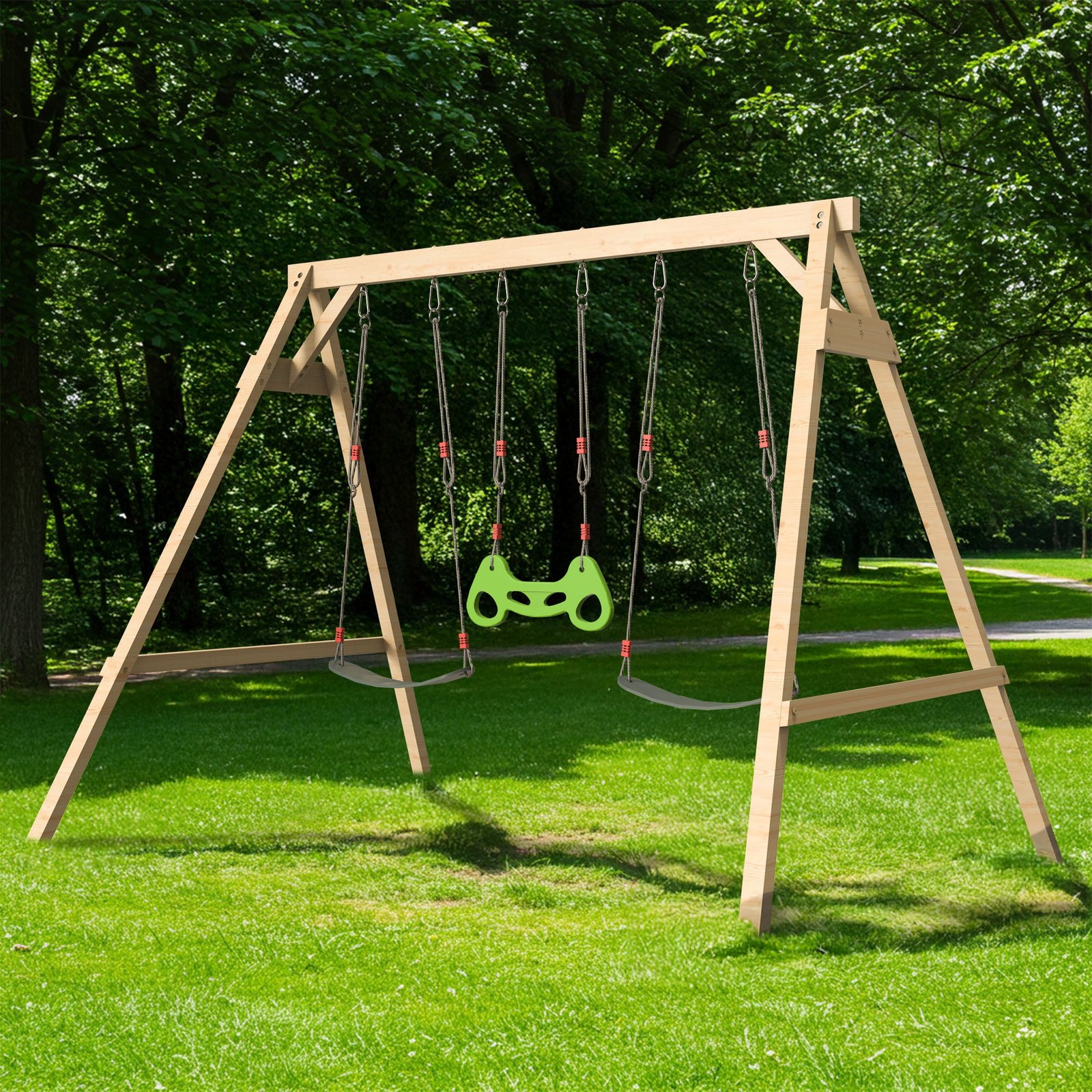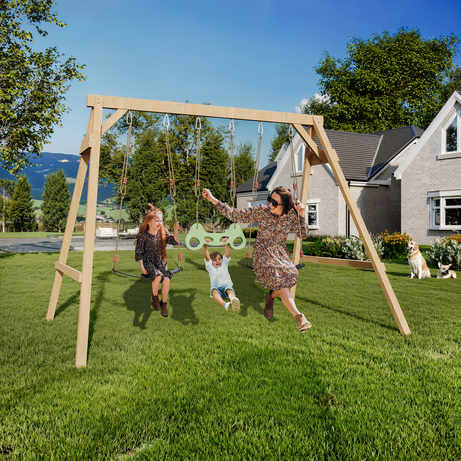 This wooden swing set outdoor for kids is coated with imported weather-resistant water-based paint, which significantly extends the service life of the wood and ensures that it can withstand all outdoor conditions, regardless of wind or rain, supporting children’s all-weather play.